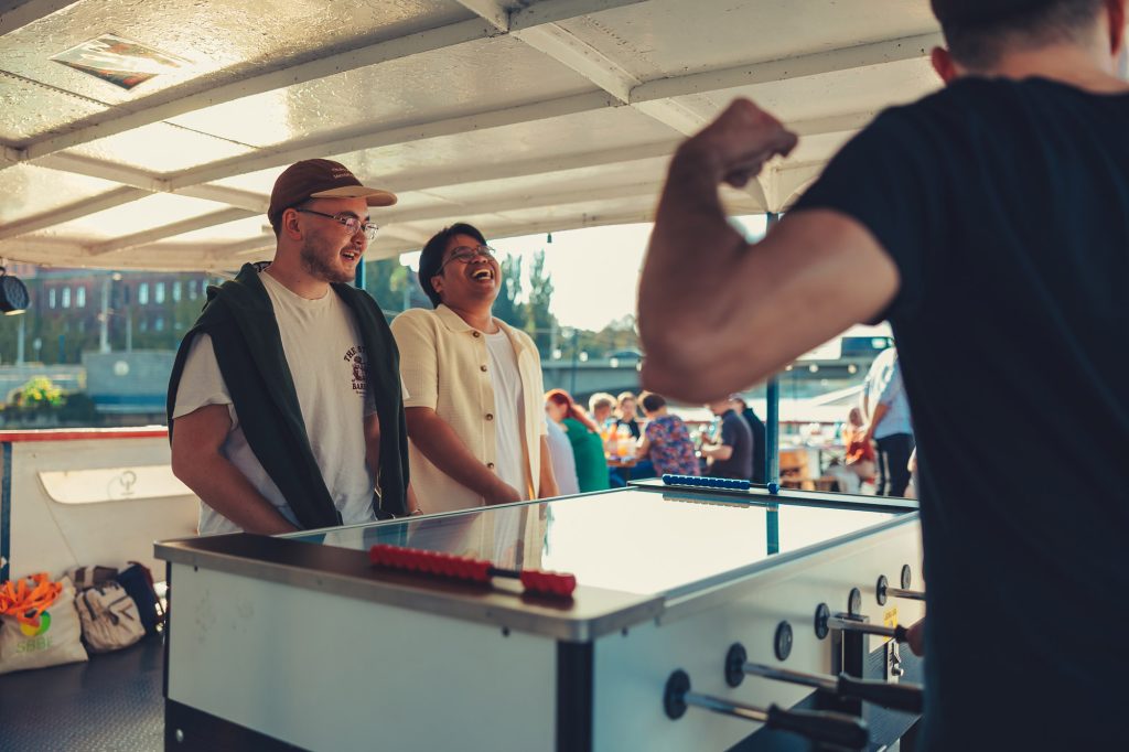 The newest cohort was also given a taste of what Wroclaw has to offer through a guided tour and cruise on the Odra River. Students, along with members of the consortium and university representatives, boarded near WUST campus and left for a scenic cruise through the city by way of tour boat. As food was barbecued on the back, students had the opportunity to chat with each other and their future professors, listen to music from every member’s home country, and challenge the program coordinator in a lively foosball tournament.