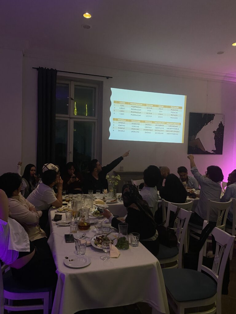 Everyone was able to partake in regional specialties – it was a great way to celebrate the local culture and hospitality of the Polish people. But the evening was more than just a meal. The room was filled with laughter and competition as the students and faculty members participated in trivia games to test their knowledge of their host city, Wrocław, and Poland in general. It was a great way to look back on how much the group had learned about the culture that had influenced their first semester.
